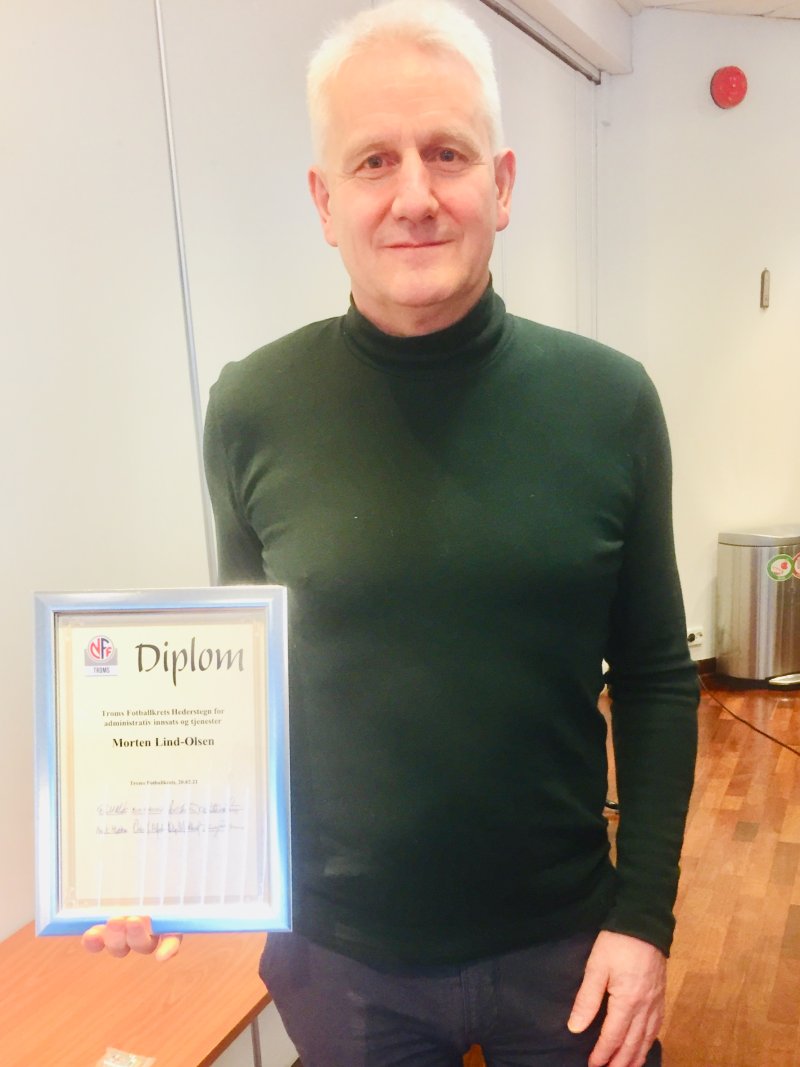 Morten Lind-Olsen mottok under helgens kretsting Troms Fotbalkrets Hederstegn for administrativ innsats og tjeneste