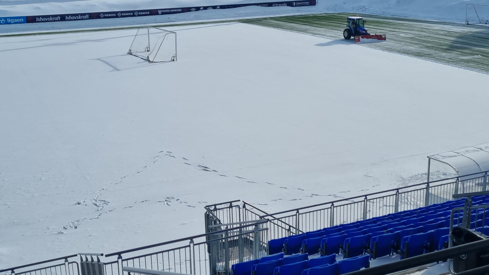 For morgendagens kamp meldes det om lett snø gjennom natten som er perfekt for å få tatt opp banen slik at den er grønn og klar til kampstart 1400 og det blir ellers veldig fine spilleforhold.